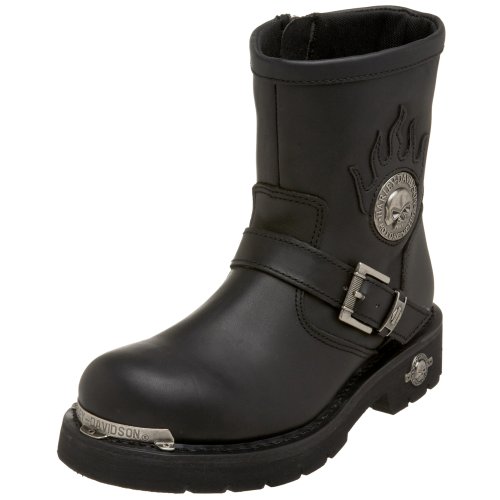 Everyone needs a classic biker boot in his closet or on his feet, and Harley Davidson has created a winner with this one. The rugged leather upper features a side zipper, buckled ankle strap, and embossed skull logo on the shaft. Metal tabs offer a bit of flash on the toe and heel, while the treaded rubber sole is both durable and comfortable. Cool, comfortable, classic.