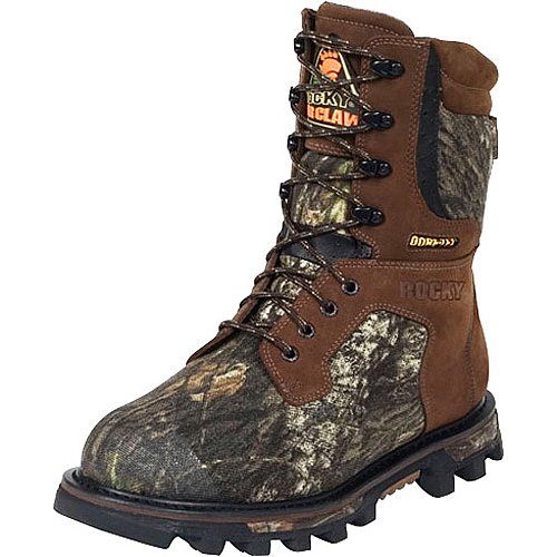 Rocky 8" BearClaw 3D Insulated Camo Boots. Comfort - laced footwear for shaky weather! Tough Boots for rough environments. Start with the unbeatable GORE-TEX fabric... you won't have to worry for a second about moisture seeping in or a stuffy, swampy boot interior because of the waterproof and breathable construction. And they stand up to any rugged, rocky or unstable terrain you can find! With the no-slip, trail-savvy BearClaw 3D rubber outsole, you'll stand strong, even in wet weather. And for good measure, the smart folks at Rocky added 1,000 grams of Thinsulate Ultra insulation so you keep going strong in the face of adversarial weather conditions. Rainy-weather rebuttal: Full grain brown leather and durable nylon uppers; Cushioned Air-Port footbed is perforated to allow for maximum air circulation and comfort; Each Boot weighs approx. 34 ozs.; State Size and Color. Pick 'em up right now! Men's Rocky 1,000 gram Thinsulate Ultra Insulation 8" BearClaw 3D Boots