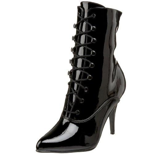 Ankle boots are hot again this season, and you’ll be right on trend with this ultra-sleek and glamorous design by Pleaser. Beautifully crafted with a shiny synthetic patent upper, the vanity-1020 features a stylishly pointed toe, sexy-thin stiletto heel, and vintage-style lace-up front. The full-length side zipper makes for easy dressing and provides a snug fit, perfect for wearing under trousers or with a long skirt.